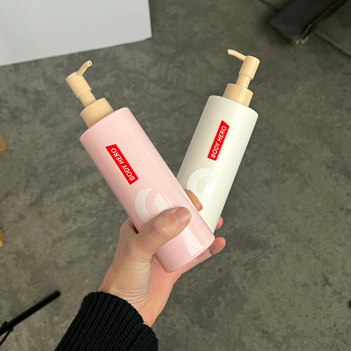 Two Body Heroes, now with enhanced formulas, upgraded packaging and our signature Orange Blossom Neroli scent. Start in the shower with Daily Oil Wash for a deeply nourishing cleanse and finish with new Daily Perfecting Lotion for soft, fortified skin.