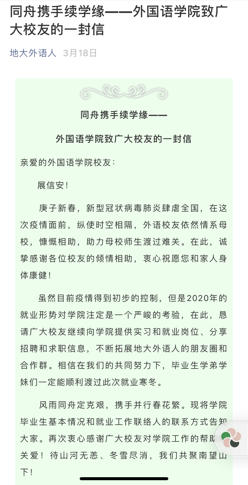 taptap点点官方网站促进2020届毕业生充分就业工作方案 致校友的一封信
