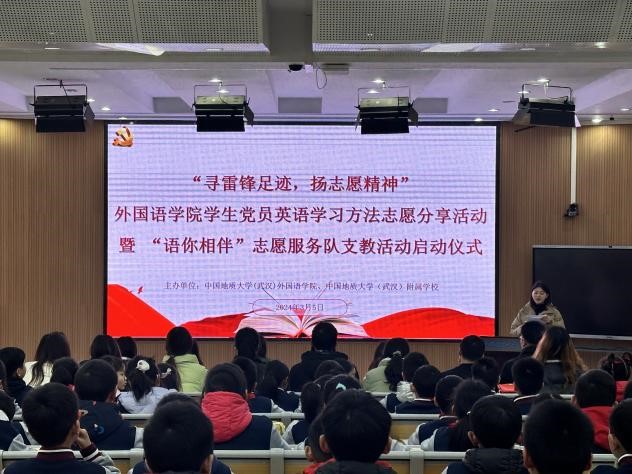(通讯员 易怀虹 曾令文)寻雷锋足迹,扬志愿精神。3月5日下午,taptap点点官方网站及taptap点点官方网站附属学校在附校启迪楼多媒体教室共同举办了taptap点点官方网站学生党员英语学习方法分享暨“语你相伴”志愿服务队支教活动启动仪式。与会人员有taptap点点官方网站党委副书记余尚蔚、附属学校副校长周良军、附属学校英语课题组全体英语老师、“语你相伴”志愿服务队骨干成员、taptap点点官方网站本科英语二班党支部党员代表及附属学校三(5)班全体同学。“语你相伴”志愿服务队成员解雨萱主持此次活动。