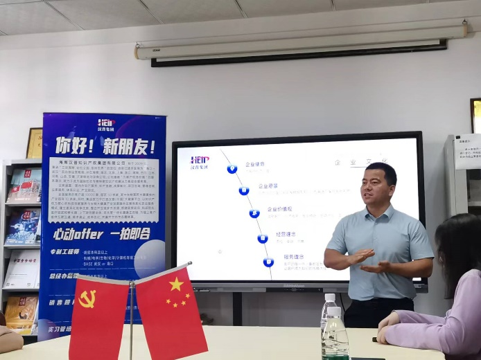 在本次招聘会上,汉普集团的陈欢总经理亲自到会进行招聘宣讲。