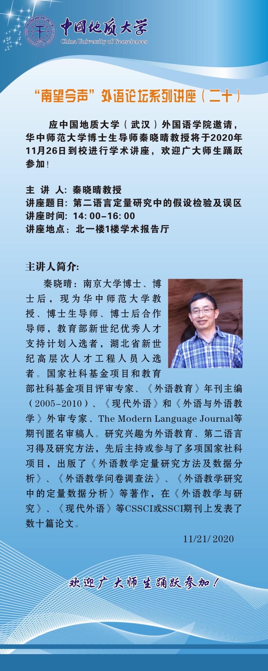 “南望今声”外语论坛系列讲座(二十)通知