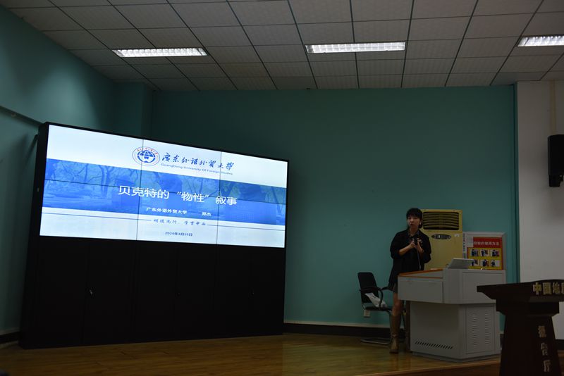 2024年4月26日下午2时30分,taptap点点官方网站“南望今声”外语论坛系列讲座第61期在北一楼120学术报告厅举行。主讲人广东外语外贸大学英文学院郑杰教授,应邀来到taptap点点官方网站做了一场题为“贝克特的‘物性叙事’”的精彩讲座。此次讲座由taptap点点官方网站李慷副教授主持,参会人员有相关专业老师以及研究生共计100余人。