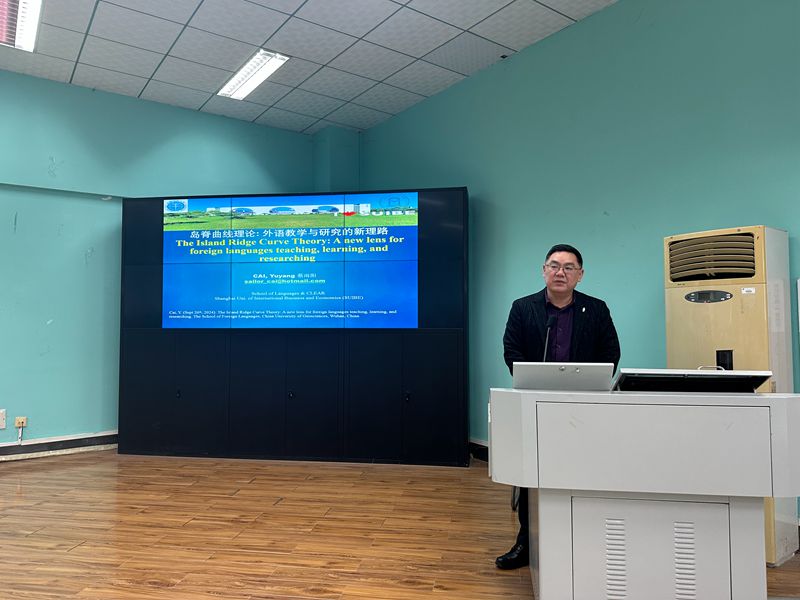 蔡雨阳教授是香港大学教育学院语言测评与教育哲学博士,现任上海对外经贸大学语言教育与测评研究中心主任、上海市高层次特聘教授。他在语言测评、教育心理学等领域成就卓越。蔡教授以其原创性研究为学界所知,是语言测评理论“动态语言能力系统”和教育心理学理论“岛脊曲线理论”的创立者,是多阶调节分析统计模型的开发者。本次讲座中,蔡教授以深厚的学术背景和幽默风趣的语言,为师生们带来了一场别开生面的学术盛宴。