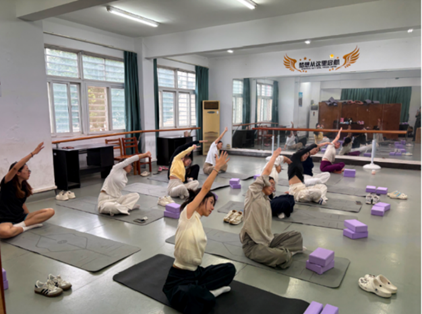 热身过程中,大家跟随呼吸的节奏,一吸一呼间,烦躁与疲惫渐渐消散。初次接触瑜伽的同学也在老师的引导下逐步放松了身体,专注地感受着肌肉的舒展与内心的安定。