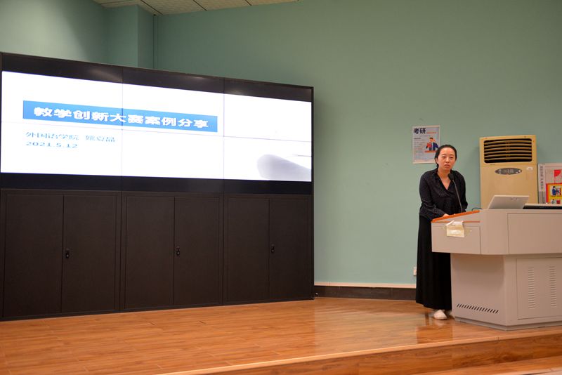 四位老师分享之后,杨红燕副院长总结说,教学大赛、课程建设、教改项目等为老师们提供了提升教学的平台和窗口,也让大家看到外语课程超越语言的育人功能,每位教师都是育人的主力军,希望学院所有老师都承担好立德树人大任。