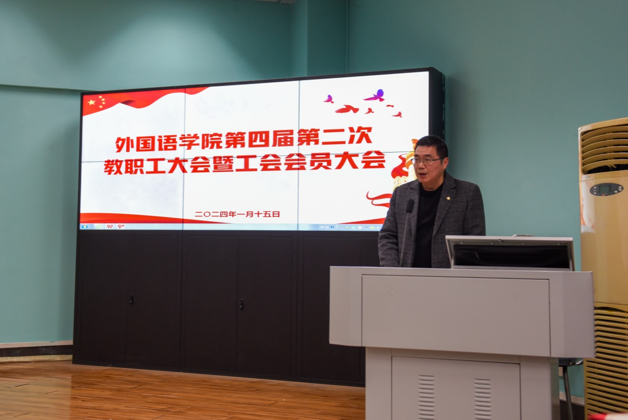 (通讯员邹蔚鹤 摄影戴薇 严蕾)2024年1月15日,taptap点点官方网站第四届第二次教职工大会暨工会会员大会在北一楼学术报告厅隆重召开。学校党委副书记王甫出席大会并讲话。大会由院党委书记刘世勇主持。