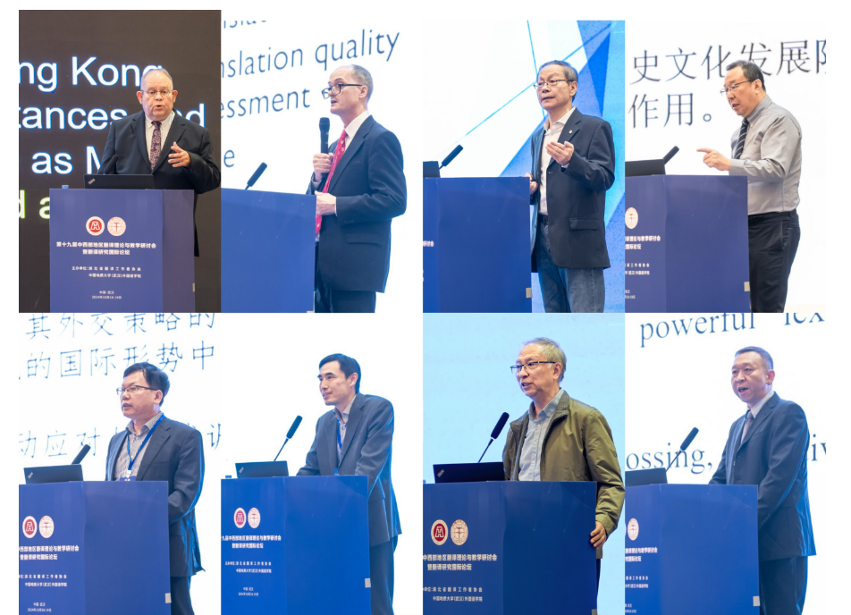 香港城市大学中文、翻译和语言学系系主任 Jonathan Webster教授、香港恒生大学翻译及外语学院院长Mark Shuttleworth教授、香港中文大学(深圳)翻译学朱纯深教授、武汉大学外国语言文学学院刘军平教授、上海外国语大学校长助理胡开宝教授。北京外国语大学高级翻译学院副院长姚斌教授、上海外国语大学高级翻译学院柴明熲教授、taptap点点官方网站院长张峻峰教授等8位专家分别作主旨演讲。主旨发言涵盖了数智时代的翻译技术与实践应用、元宇宙翻译范式与跨文化传播、翻译研究领域的发展变化、现代翻译行业发展、人工智能时代口译教学与研究新趋势、外交话语翻译等多个研究领域,发言高屋建瓴、深入浅出,既有前瞻性、开拓性和学理性,又不乏指导性、实践性和应用性,为中西部地区乃至全国翻译学界和业界的可持续性发展与创新发展提供了多维研究思路。