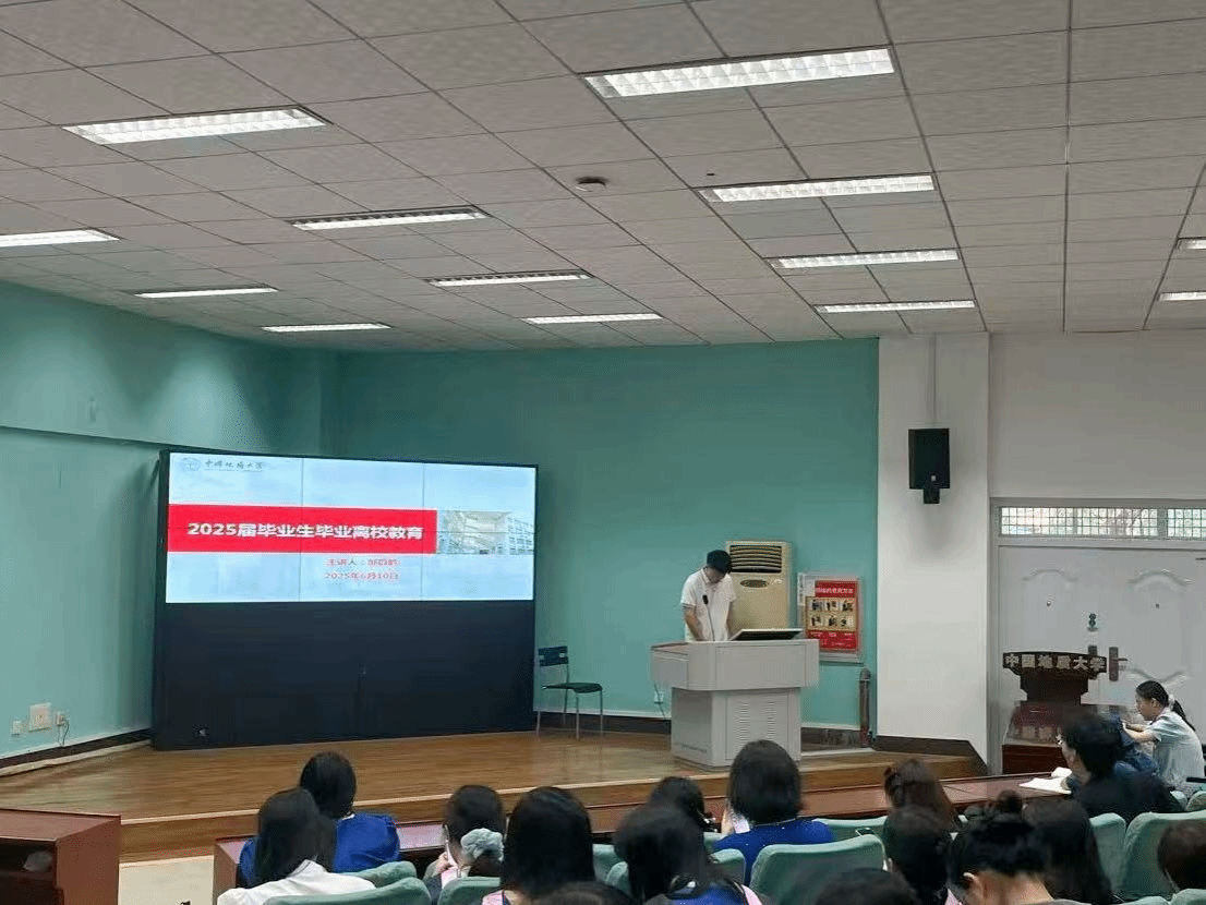 最后,余尚蔚在离校教育总结时强调,无论同学们是继续深造还是走入工作岗位都要以善德行天下,以纪法为标尺,以安全为前提,走稳人生每一步。他代表学院向全体毕业生送上美好祝福,希望同学们能够永葆家国情怀,将个人理想融入国家发展之中;坚持终身学习,不断提升自己的专业素养和综合能力;常怀感恩之心,传承地大精神,铭记师长教诲,常回家看看。