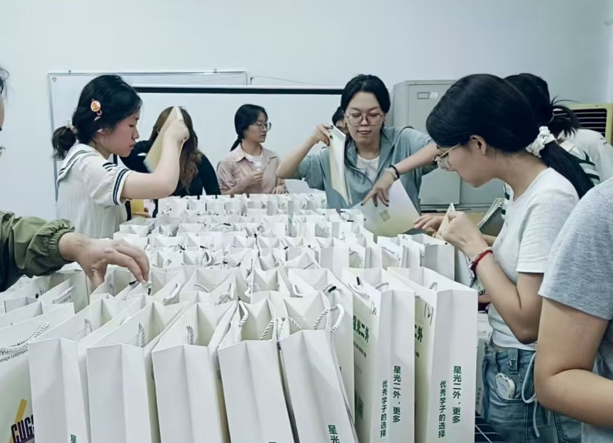 学院高度重视迎新工作,在暑期提前一个月谋划迎新工作,并组织团学骨干开展迎新策划、创意设计和物资准备。迎新志愿者们带着对新生学弟学妹们的关爱与期待精心准备迎新伴手礼,从满含心意的迎新笔记本,到独具学院特色的定制文创电动小风扇(包含taptap点点官方网站院徽以及学生会自主设计遴选的国风卡通角色——国风语UU,别出心裁!),还有早早在迎新点翘首以盼的志愿者们,无一不在彰显着我们早已做好准备,只为“精准接收”向我们“投送”的外国鱼儿们!