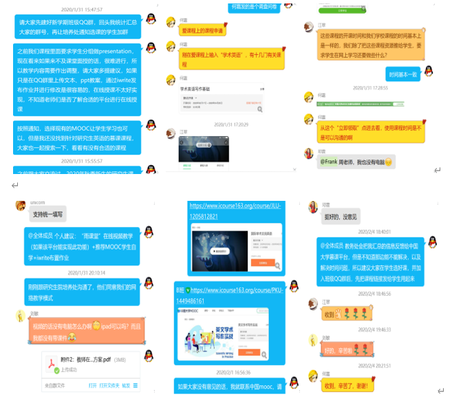 自1月30号开始,在校研究生院的具体要求和指导下,学院张基得书记、张峻峰院长高度重视,积极部署。承担taptap点点官网研究生公共英语教学的老师们充分利用原定返校开学日期前的时间,在QQ群里开展头脑风暴,充分讨论如何因地制宜地开展学习、教学和研究工作,迅速制定研究生科技英语写作与交流“一课一策”教学工作组织方案。